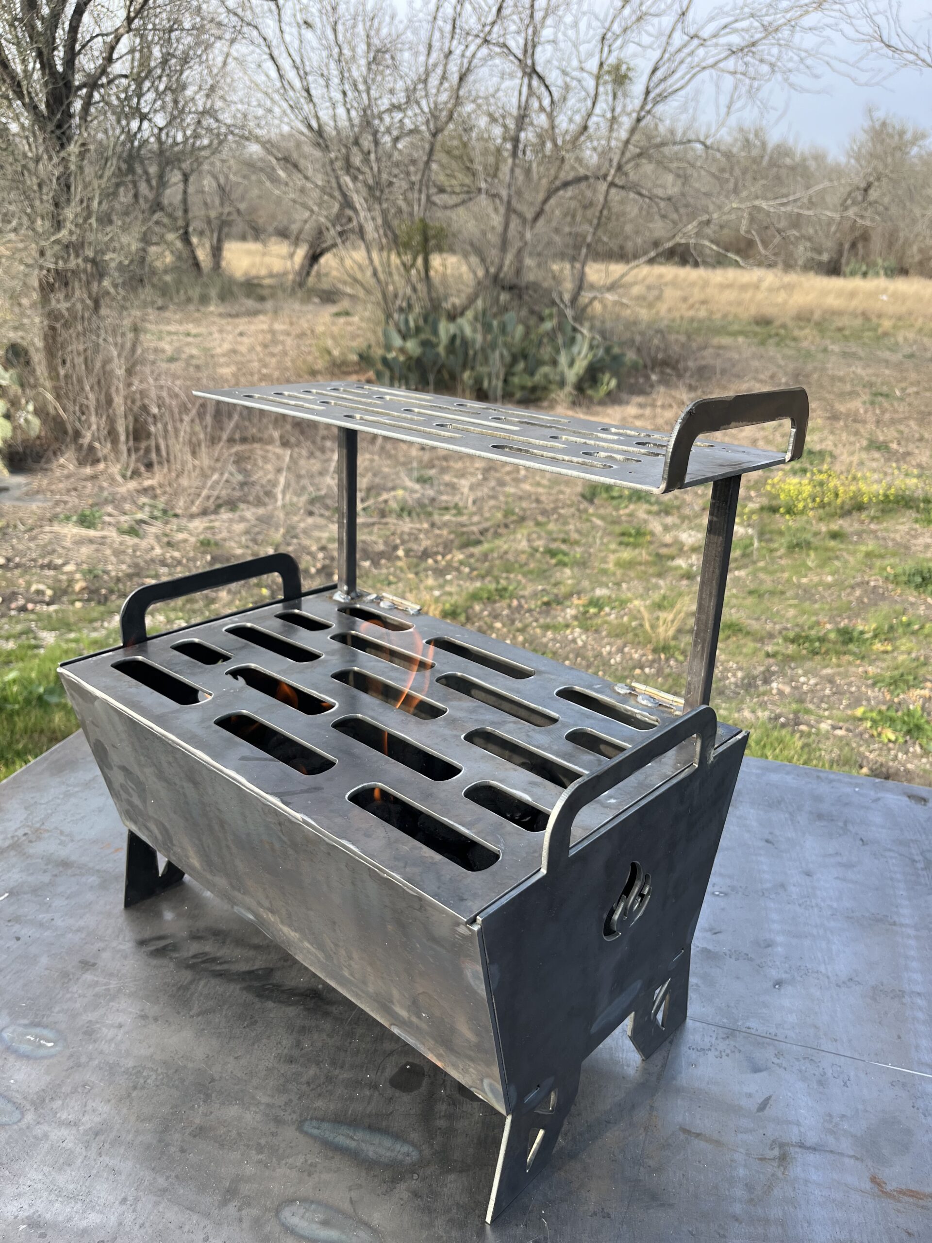 -This portable grill comes fully assembled with the main cooking grate and warming grate on hinges for easy fire management.